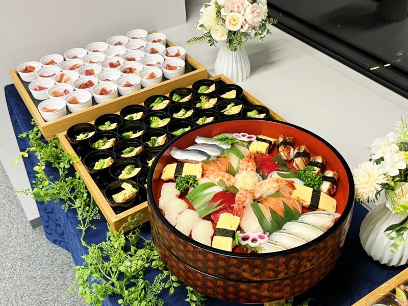 温製料理に加え、「握り寿司盛り合わせ」をご用意し年配のご参加者様からも「安心して食事ができる」と好評でした。