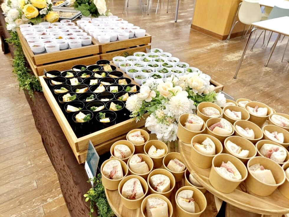 手に取りやすいカップ提供の冷製料理はどれも好評で、特に「サラミとレッドチェダーチーズのチャバタサンド」が人気でした。