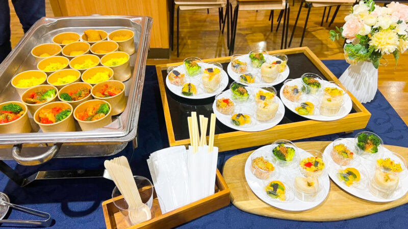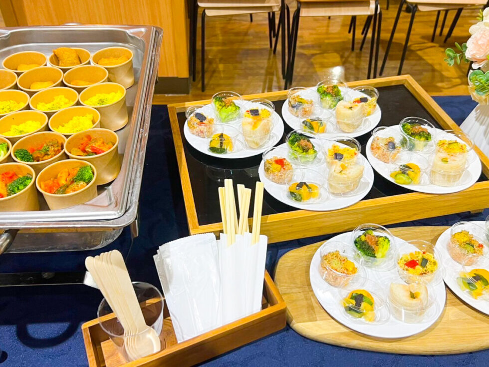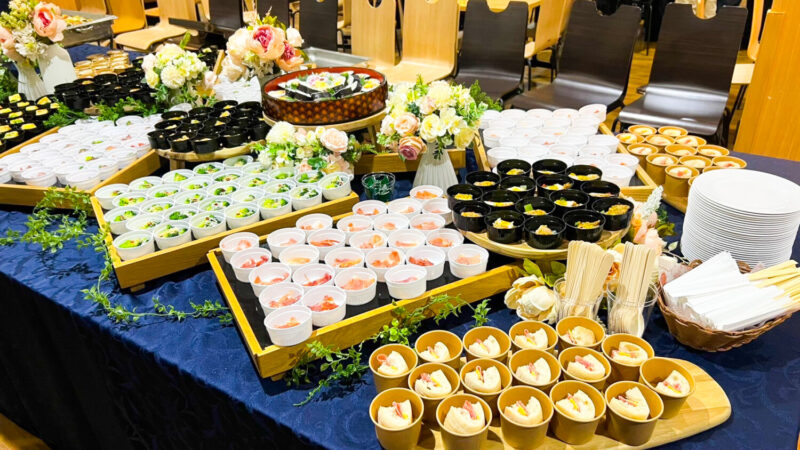 本案件では、62名様分のお食事とお飲み物をご用意させていただきました。