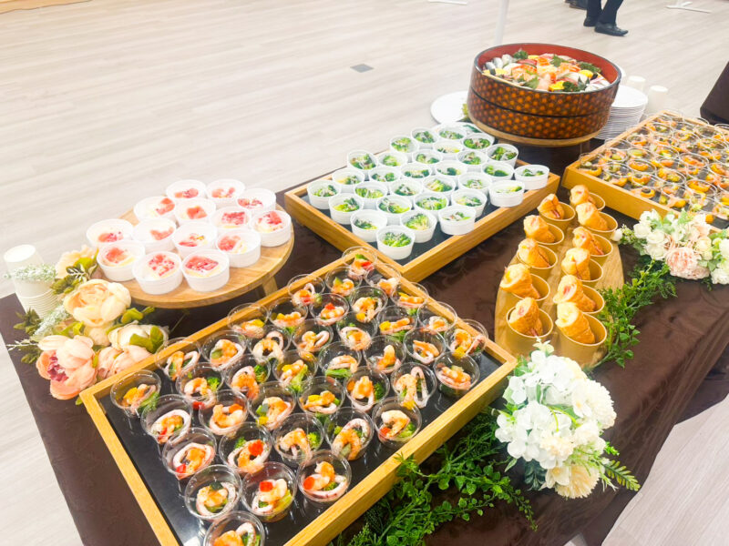 今回は11種類の冷静料理をご用意しました。全体を冷製でそろえることで、交流の合間にも手に取りやすく、会話の流れを妨げにくい内容になっています。