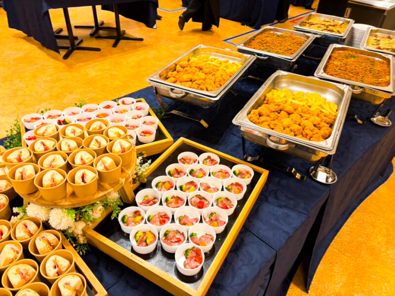 人数の多さに加え、しっかり食べられる内容が求められる場でもあったため、料理はボリューム感を意識して構成しています。