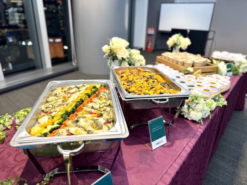 種類豊富なケータリングメニューはお客様に好評で、特に「白身魚の香草グリル」が人気でした。