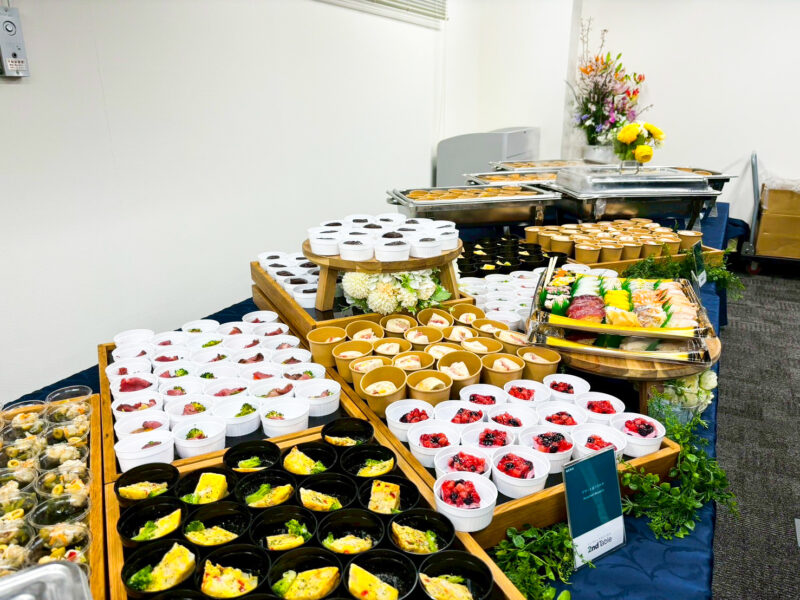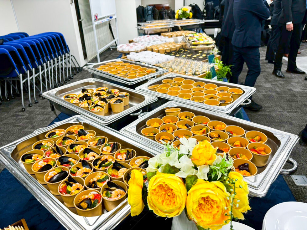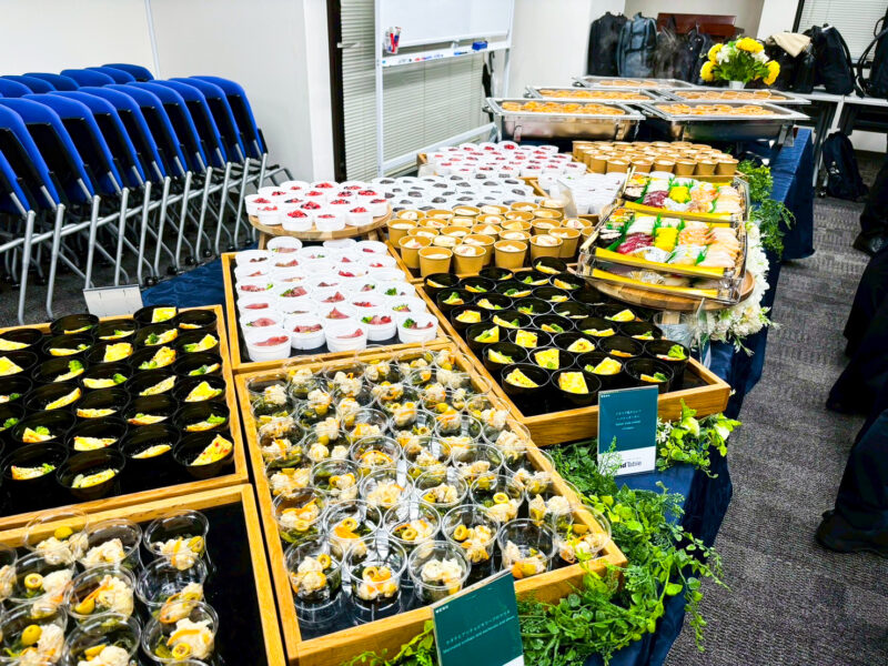 今回はすべてのお料理をカップでご提供し、交流の合間でも取りやすく、会話の流れを止めにくい形にまとめました。